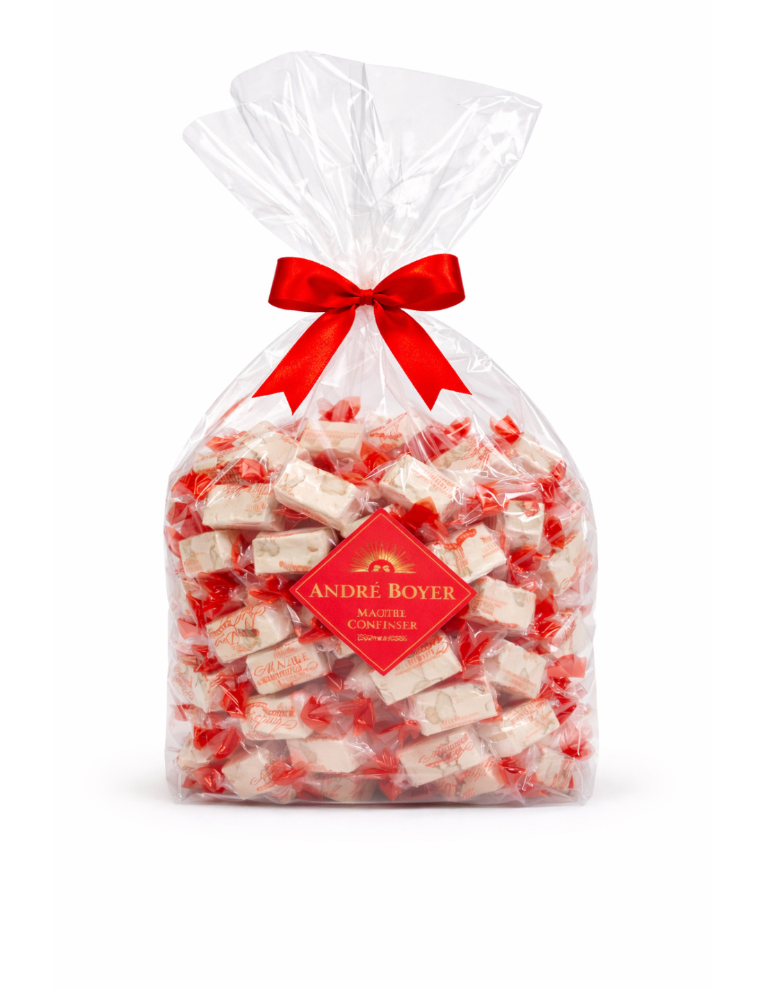 Composé de miel de lavande récolté sur les pentes du Mont Ventoux, et d’amandes de Provence, notre nougat blanc onctueux, soufflé, très tendre est fabriqué de façon artisanale à Sault en Provence.